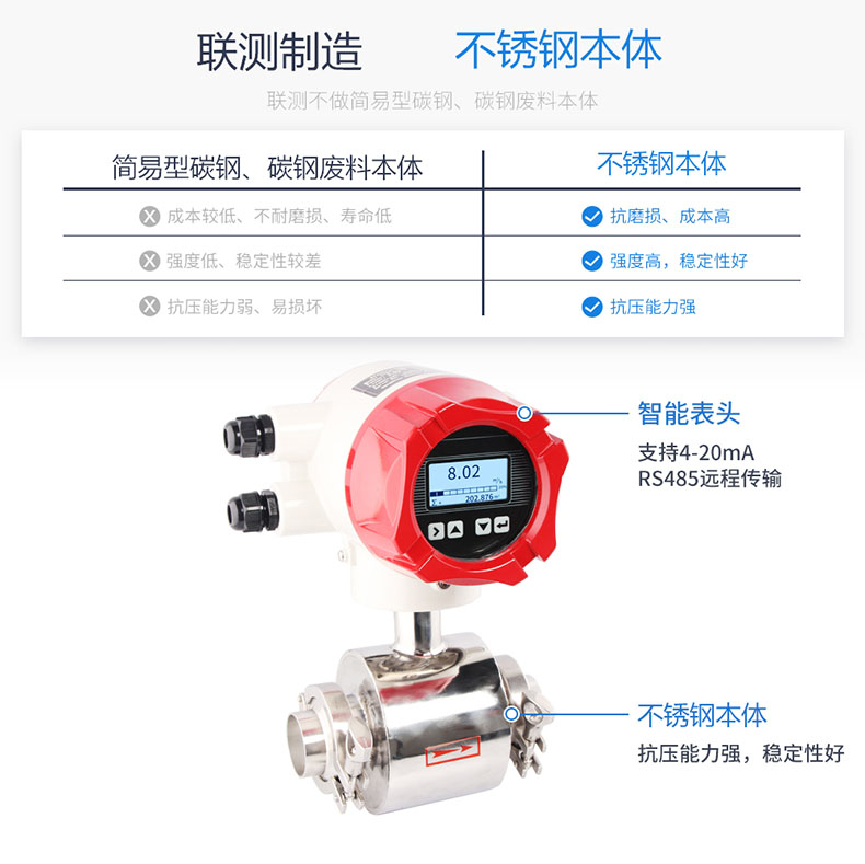 聯(lián)測(cè)LDG-SINW衛(wèi)生型電磁流量計(jì)廣泛應(yīng)用于食品,醫(yī)藥等衛(wèi)生型行業(yè)及溫泉、飲料等領(lǐng)域的流量計(jì)量。多用于現(xiàn)場(chǎng)工況或者介質(zhì)要求衛(wèi)生類型。