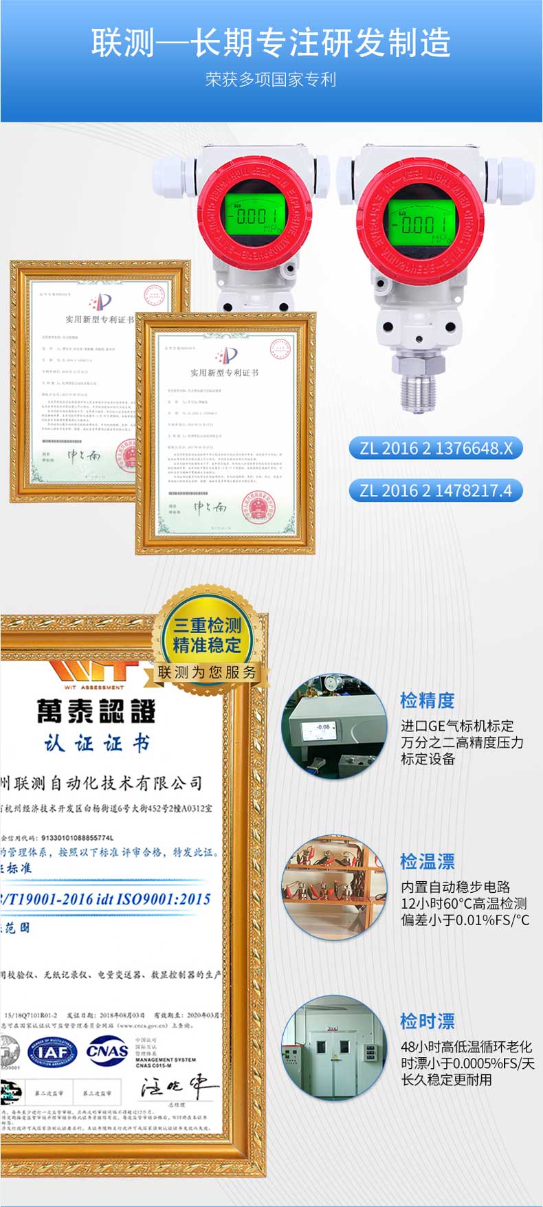 聯(lián)測(cè)SIN-P400全數(shù)字電路保證精度,保證長(zhǎng)期零點(diǎn)和線性穩(wěn)定,現(xiàn)場(chǎng)液晶顯示,多種量程選擇,防雷擊,防射頻干擾,液晶顯示可通過按鍵調(diào)整零點(diǎn)和量程,方便用戶調(diào)試。